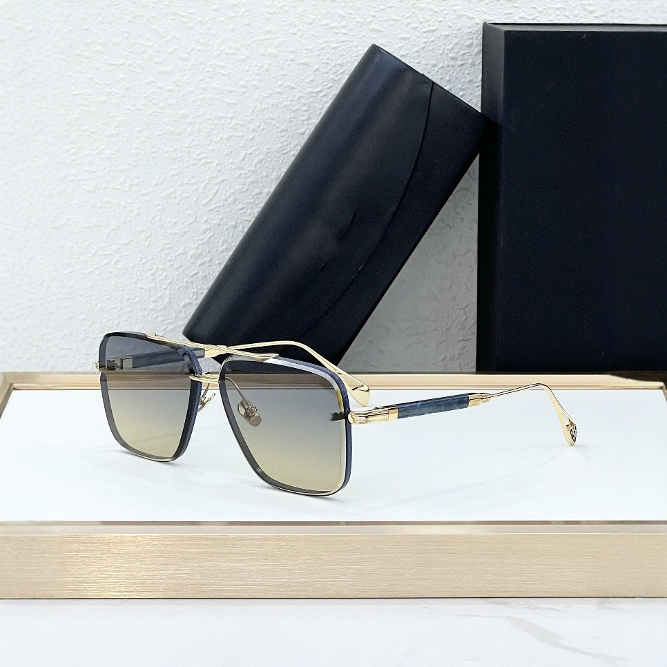 Cross-border New Personalized Metal Sunglasses UV-proof Sunglasses Men's Fashion Advanced Sense of Gradual Change Lenses Trend Women